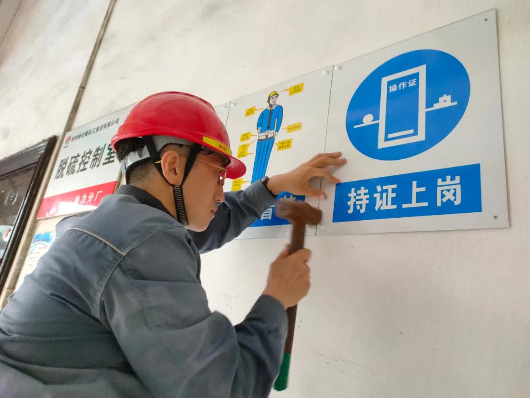 近日,动力分厂组织党员对锅炉、脱硫、脱盐水、供排水四个装置区进行安全标识牌的安装上墙。